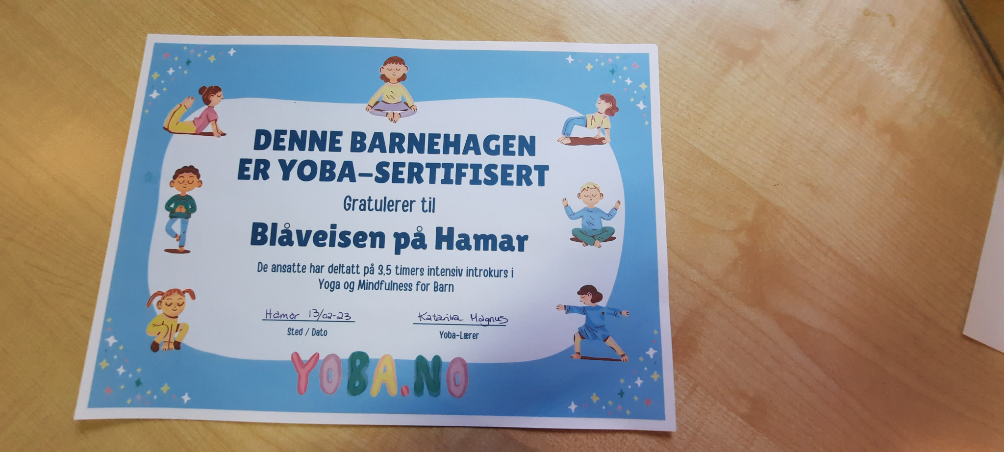 i Blåveisen barnehage har alle ansatte deltatt på 3,5 timers intensiv introkurs i Yoga og Mindfullness for Barn.